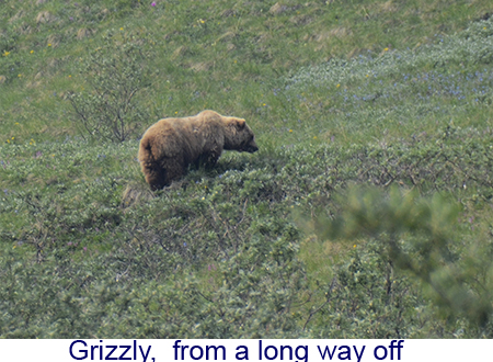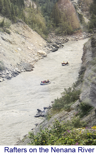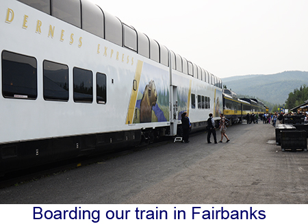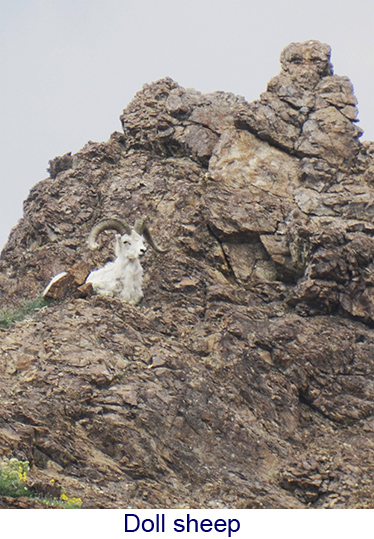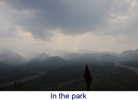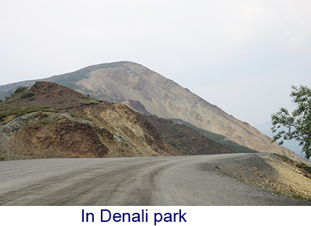 It was a very long day, four hours on the train to Denali, a hour for lunch and a seven hour bus tour through Denali National Park. The trip was amazing. We got on the train at Fairbanks, a luxury car attached to a regular Alaska Rail train. The top level was an observation car and below a dining car like they used to be. China and silver and crystal – the food was great too. The train wound through the mountains along the Chena river. The scenery was unbelievable, snow covered mountains, bridges over deep gorges.There were rafts on the river and we even saw a family of moose and a gigantic beaver lodge — no beavers though. We got to Denali about noon and had lunch. Denali covers six million acres, larger than some states, so even with a seven-hour tour we could see very much. There are no paved roads and the scenery was much more rugged , at times the bus was at the edge of a 1000-foot drop. But for the first five hours or so the wildlife was nowhere to be found. But the last hour we saw it all. Doll sheep high on a mountain, moose, caribou foxes and the squirrels they hunt, and, most elusive of all, a massive grizzly bear. We even saw a ptarmigan, the Alaska state bird. What we didn’t see was Mount McKinley. You wouldn’t think that the highest mountain in North America could hide bt it does. We were told that only thirty percent of the people who go to the park actually see the mount and smoke from the mo2re than 200 forst fires burning in the area didn’t help. We were among the 30 percent but that didn’t happen until the next day. On the road from Denali to Anchorage. We stopped at the Alaska veterans memorial just outside Talkeetna. The mountain appeared through the clouds but unless you knew exactly what to look for, you’d never know it was rhere. We stopped for lunch in Talkeetna and experienced an earthquake that measured 5.8 on the Richter scale. Alaska, it seems, has more earthquakes than any other state. |
