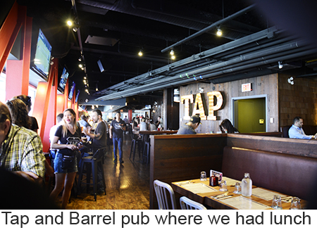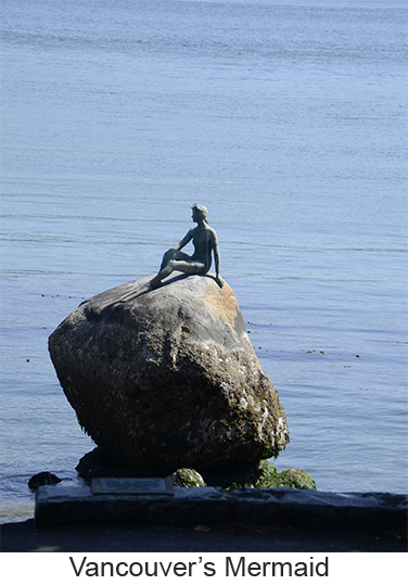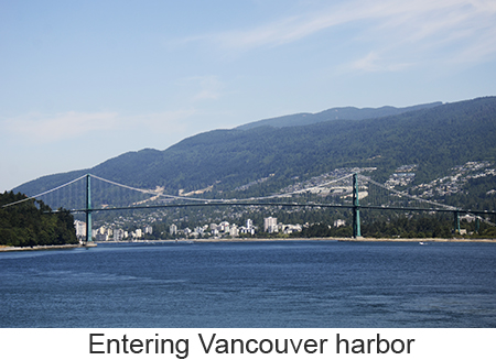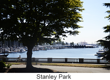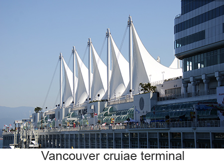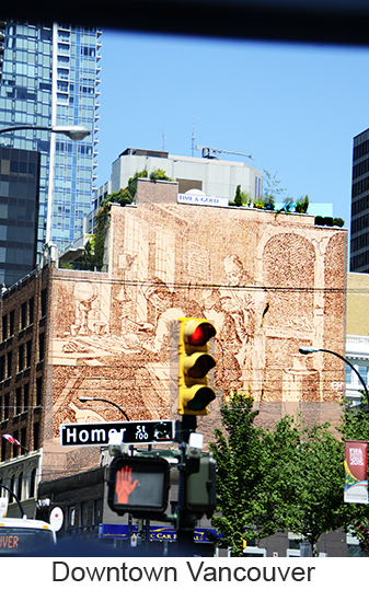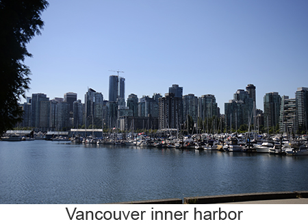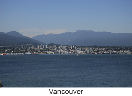 Vancouver was our final port and our only stop in Canada. It was also the largest city we visited. Since our flight didn’t leave until 6:00 we booked a hop-on tour of the city which included train tickets to the airport. We really didn’t have time to actually get off and explore but we did get a comprehensive view of the city. Vancouver is a very modern city with lots of tall glass buildings. It is very diverse, in fact our guide told us that over 50 percent of the population has a first language other than English. The city has is very green and many of its building have roof-top gardens. The convention center near the harbor actually has a sod roof with grss and trees and flowers and beehives. The waterfront is really beautiful with long beaches and multiple marinas. Granville island is a center for the arts and entertainment with no vehicle traffic allowed. After riding around the city we stopped off at a pub for a late lunch. We had asked the bus driver for some place that was not flooded with tourists So he sent us to the Tap and Barrel — which was flooded with locals. After lunch we walked to the train station and took the train to the airport. We picked up our luggage there, went through security and started the long flight home. |