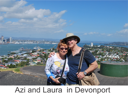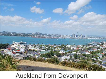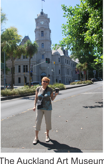 It's a 12-hour flight from L.A. to Auckland but our 'couch class' seats made it a little less difficult. In couch class you get three economy seats with footrests that go all the way up to give you a larger flat surface. You can actually stretch out and sleep. It costs a lot less than one business class seat. We got into Auckland in the morning, well before check-in time. We walked down to a cafe to get coffee and tea and something to eat. They really know how to make coffee and tea. We also found that their produce is better than most of what we get stateside. Walking back to our hotel, we passed The Sky City complex which has a couple of hotels, restaurants, shops and, to Laura's delight, a casino. The complex also boasts the Sky Tower, at 1075 feet the tallest tower in the southern hemisphere. After our coffee and a short stop at the casino we went back to our hotel to sleep off our flight after eating some take-out from a Korean deli. Auckland is a very walkable city. Our hotel is in the center city, within walking distance of just about everything. On Friday we walked to the Auckland art museum. A really interesting small museum with a lot of work by New Zealand artists. We also stopped in a number of art galleries. We ate at the Shakespeare, billed as the oldest pub in Auckland and home of its first microbrewery. The pale ale was very good as was the fish and chips we had for dinner. The next day we walked to the ferry terminal to get the ferry to Devonport. Devonport was established by the Royal Navy around 1840. The town itself is filled with Victorian-era houses. and steep road to the top of extinct volcanoes. There is a network of forts built to stop the Japanese in WWII and later the Russians. Neither ever showed up. There are lots of shops and pubs and even a dollar store and a real supermarket. Laura found a small shop that carried top-quality women's clothing. The scenery in the area was gorgeous. In our room, actually a small apartment with a kitchenette and a balcony, we watched New Zealand tv. We were fascinated by the Maori channel, with a variety of programs all in Maori, some with subtitles and some without. We also got to see the miserable weather we left behind. |