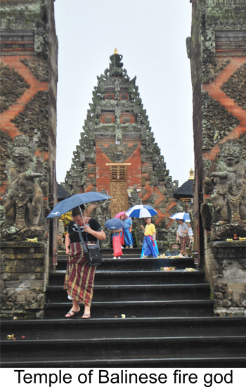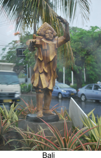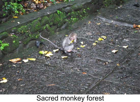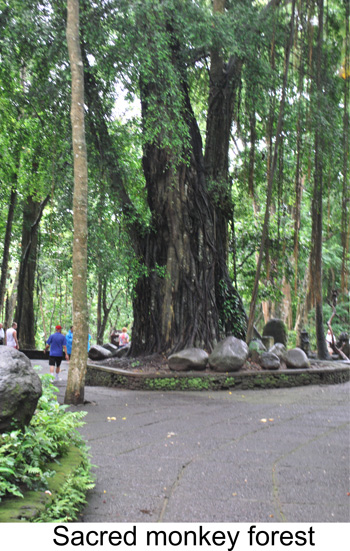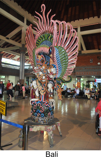 Bali -- the very word conjures up romance. The reality, however, is something else again. We arrived in Bali in the rain and we were delayed about two hours before anyone could get off the ship. This didn't help. On the advice of people who had been there before, we decided to skip the ship-sponsored tours hire a taxi to take us around. This proved to be a wise decision. We had a great driver and we saw almost everything we could reasonably see in the rain. We stopped at a Balinese temple where we donned sarongs before we could go into the grounds. The temple dates from the 10th century but the grounds themselves are beautifully kept. This temple was dedicated to the Hindu fire god. We visited the forest of the sacred monkeys in Ubud. There were literally monkeys everywhere, on the streets, in the shops, everywhere. The monkeys here were relatively peaceful and did not go around snatching sunglasses, cameras and anything else not tied down. We also visited a Balinese home, actually a compound with buildings grouped around a central area Each building servers a different purpose, sleeping, cooking, eating, etc. And we stopped at a batik factory, a kite-makers and a wood-carving shop. These were very high-quality products unlike the thing we could get at the markets or regular tourist shops. But Bali itself, at least where we were did not leave a good impression. Everything was falling down and even new buildings looked seedy. There was dirt, debris and garbage everywhere. I would not go back. |