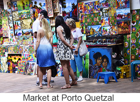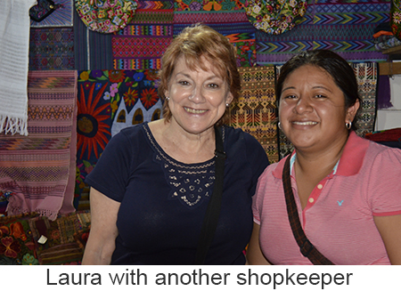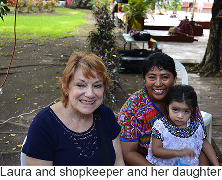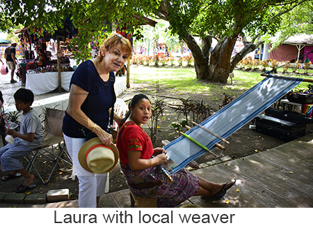 Instead of taking a tour we just walked off the ship into Porto Quetzal, a small area on the west coast of Guatemala set up mainly for commercial vessels. There is a restaurant and a marina and a small shopping area. It seems that a lot of the crafts that we have seen at other ports are made in Guatemala. In the shopping area, we watched a woman weaving cloth for a table runner (later on we bought a runner from her). In a lot of places we've visited we found that most of the so-called crafts are made in China or India. In one place they;’d actually cut the labels out of some of the shirts Here we were able to watch the crafts being made. On top of that Laura had a great chance to practice her Spanish. By the time the day was through she was able to hold entire conversations in Spanish. |