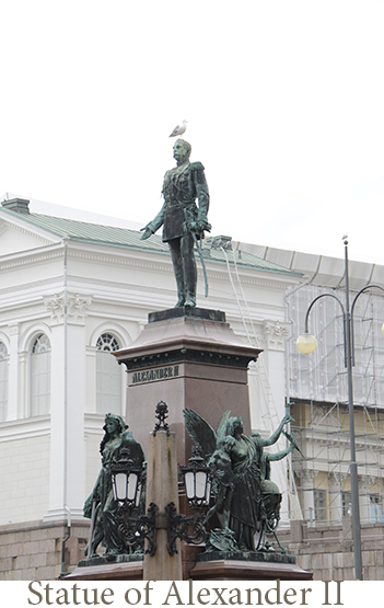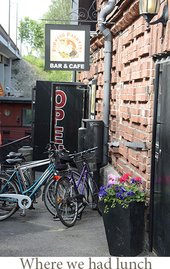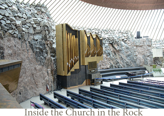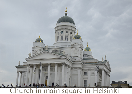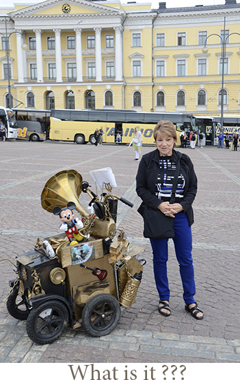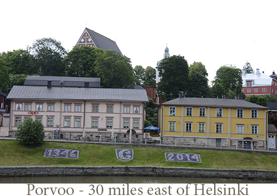 Helsinki, the capital of Finland is a seaport with a population of 500,000. It is a strange mixture of ultra-modern, Russian era and 17th century buildings. One of the more interesting sites was the church of the rock. Instead of building a traditional church the architects blasted a large crater into a rock outcrop, smoothed out the walls and roofed the crater with a dome. We visited Helsinki’s main square with its huge church. We came across a strange looking conglomerate musical instrument seemingly abandoned in the square. Surprising at the center of the square there is a statue of Czar Alexander II. The Finns are not exactly friendly with the Russians with whom they’ve fought a number of wars over the years but Czar Alexander is an exception as he supported Finnish independence. Before stopping in Helsinki we went to the village of Porvoo about 21 miles east of Helsinki. The village of about 8000 was founded in 1464 and retains much of its original character. The town has a wonderful candy store where they make their own candy and Laura managed to find a pair of boots there unlike anything she had seen before. |
