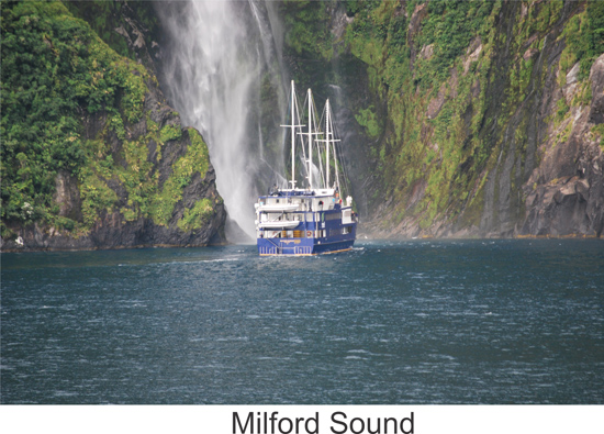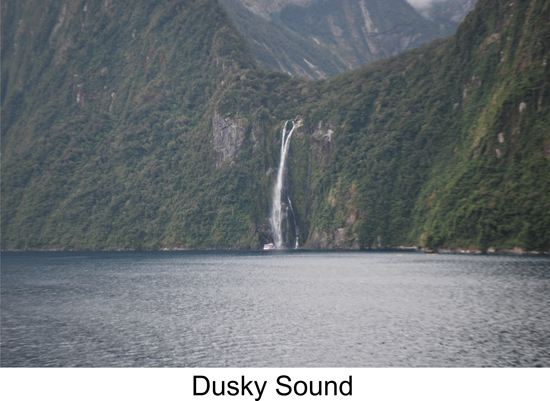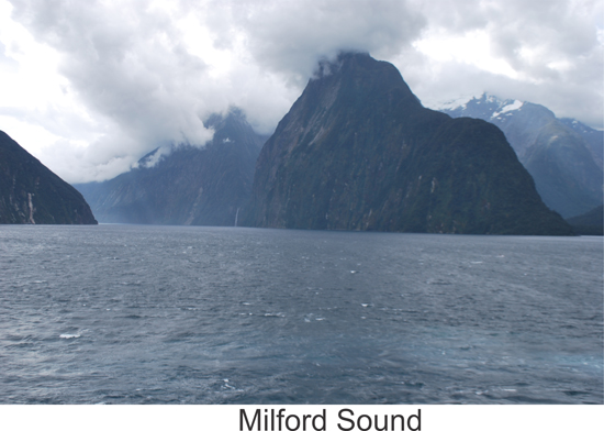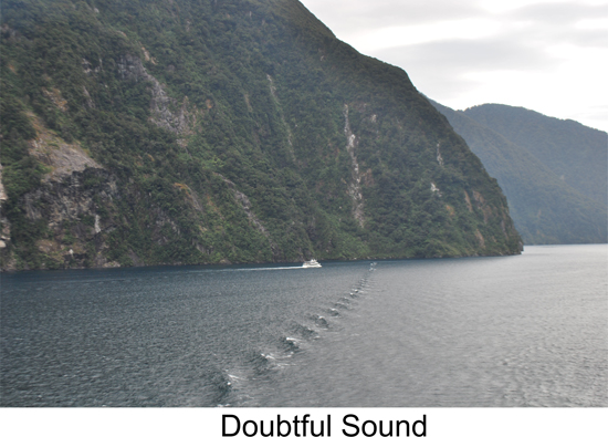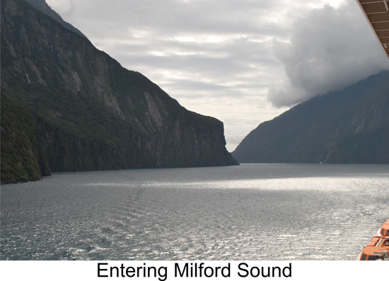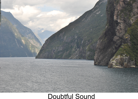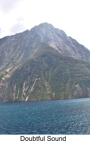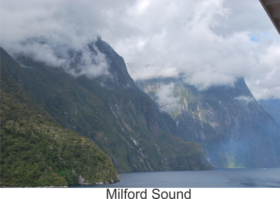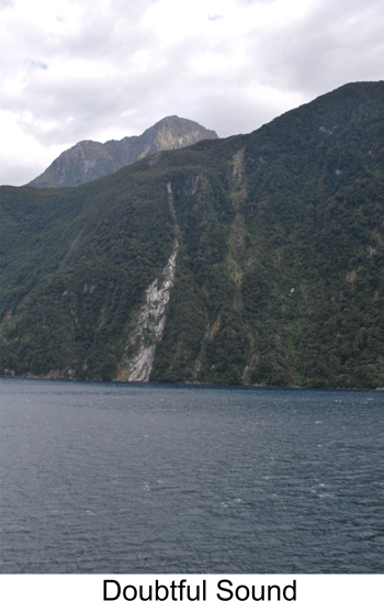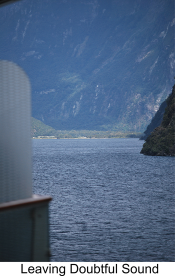 We spent our final day in New Zealand waters cruising through Dusky, Doubtful and Milford sounds. These sounds were formed by glaciers and very much resemble the fjords or Scandinavia. Dusky and Doubtful sounds are open at both ends so the ship can cruise through but Milford sound is closed so the ship has to turn around to get back out. Turning the ship the size of Celebrity Solstice in the the narrow sound takes a bit of skill. Our captain told us that the usual weather for this area is rain from steady to torrential and that our partly cloudy weather was very very unusual. The scenery around the sounds is rugged with pine-covered hills and looming rock faces where the rain has washed away all ground cover down to the bare rock. Aside from the occasional tour boat there were few signs of life. There is a small town at the end of Milford sound which caters to tourists who fly in. There are tour boats that run from the town icluding one of the strangest looking vessels I've ever seen. Start with a standard tour boat and then add three masts with roller-furling sails (there a photo of it in the slide show). The sounds were incredible with a sort of forbidding beauty that made your glad you had seen it but also glad your were on your way.