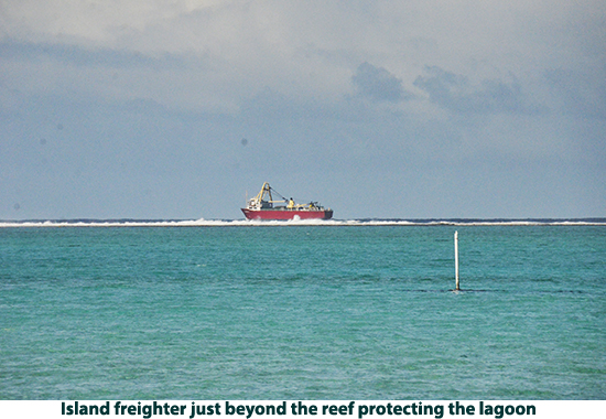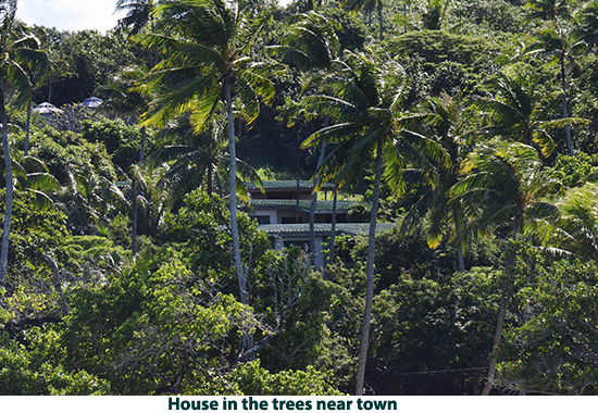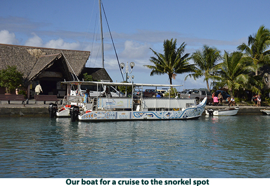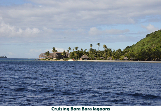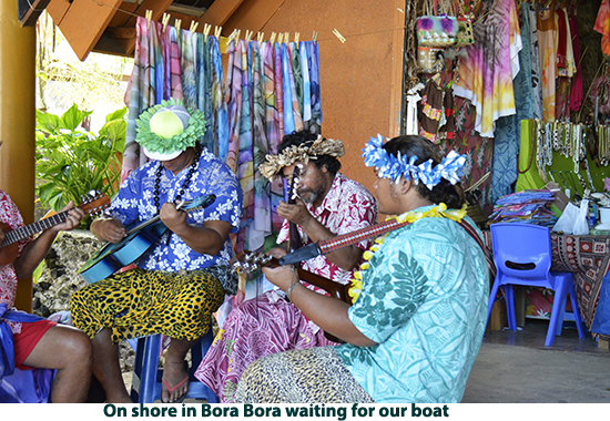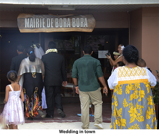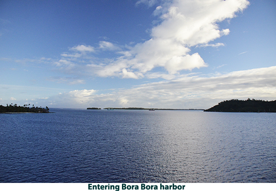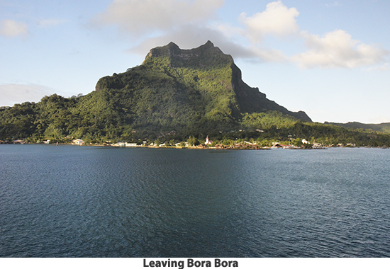 From Raiatea we sailed to Bora Bora. If you picture in your mind a tropical paradise, this island is what you will see. We decided to explore the island by catamaran. We cruised the lagoon surrounding the island, poking into secluded coves and sailing by the over-water bungalows that make up one of Bora Bora’s most exclusive resorts (starts at $1500.00 a night we were told). There are white sand beaches with coconut palm treat swaying in the breeze. It looks like a movie set. This island has to be shown in photos rather than described in words. The crew anchored the boat in about 15-feet of water and we all went swimming. There are lots of multi-colored fish and live coral. There are also a number of good dive sites on the island. After our swim we had rum punches and a leisurely sail back to the pier. We got off the catamaran and took a walk to the town. Passing the city hall we were right in the middle of a wedding with flowers everywhere, decorated pick-up trucks, the bride and groom in full dress — a good omen I would say. Laura bought a pareo , a Polynesian sarong. We stopped at a market to get a six-pack of Hinano beer (brewed in Tahiti) and then walked back to the pier to take the tender back to our ship. |