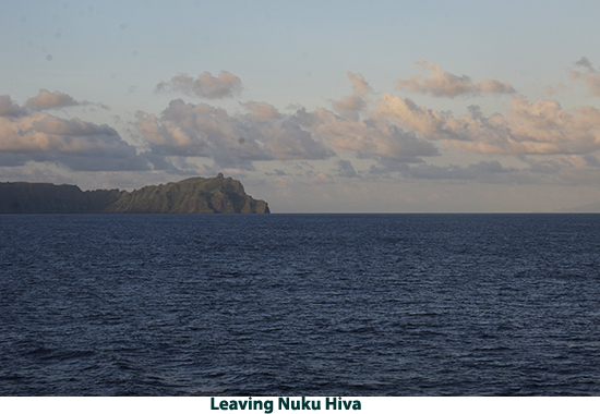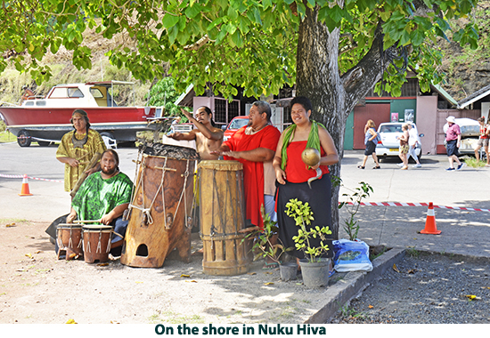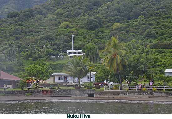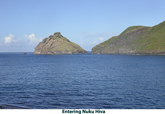 Our last stop in French Polynesia was Nuku Hiva in the Marquesas, once and outpost of the U.S. Navy during the War of 1812. The outpost is long-gone and there is very little else on the island. There is a small village and a monument honoring Herman Melville who jumped ship there and later based his novels Typee and Omoo on his experiences there. The day was very hot and humid so we pretty much just took the next tender back to our ship |